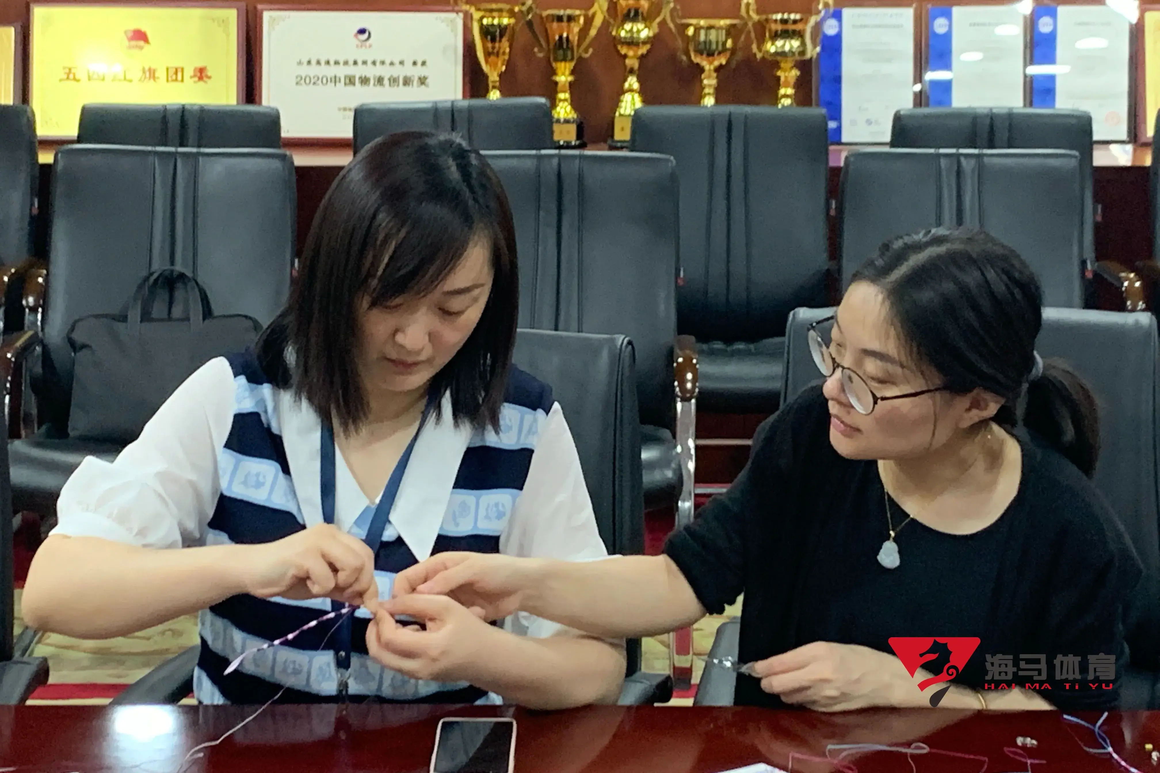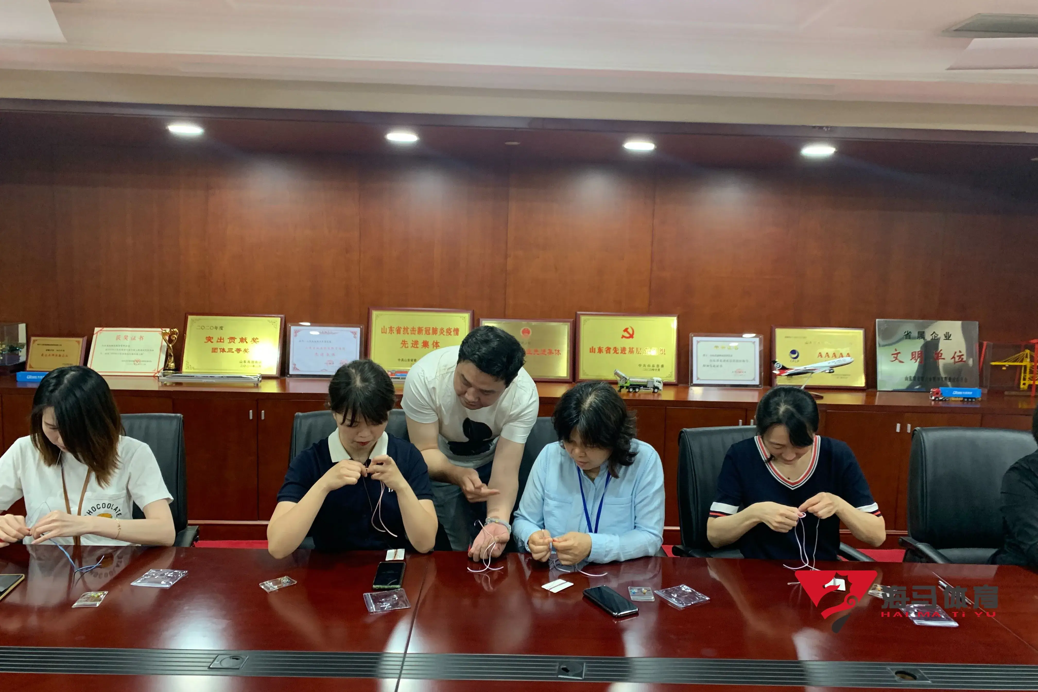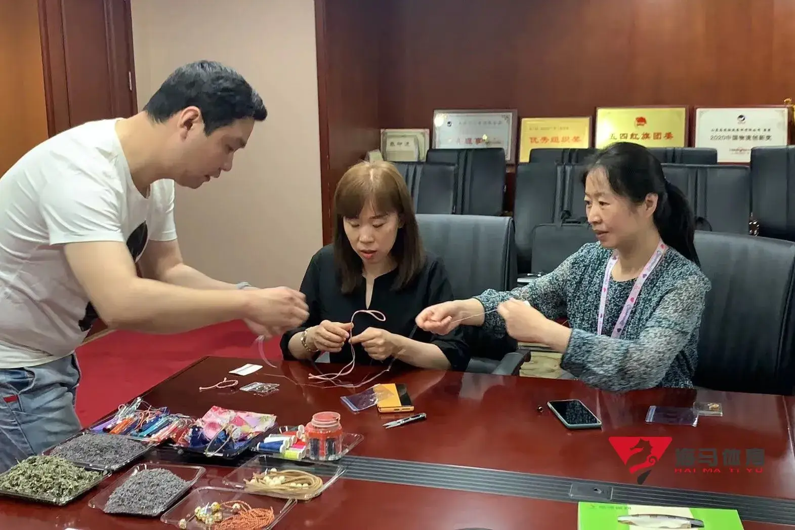 制作前,乐玩的手工老师首先介绍了端午的习俗以及端午节制作香囊与五彩绳的来历,让大家在活动前了解端午的民俗文化,手工老师将精心准备的有着美好寓意的五色彩绳、色彩绚丽的香包袋以及清香的艾草薰衣草,送到职员手中,携手制作香包和五彩绳。